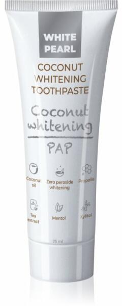 White Pearl PAP Coconut Whitening, 75 ml, Fogfehérítő fogkrémek unisex, A kiváló minőségű White Pearl PAP Coconut Whitening fogrém a fogak kíméletes fehérítésére szolgál. Hatékonyan távolítja el a fogak kellemetlen elszíneződését és rendszeres használatát ragyogó mosollyal köszöni meg önnek. Tulajdonságok: fehéríti a fogakat garantáltan kíméli a fogzománcot se