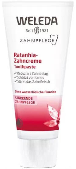 A Weleda Ratanhia gyógynövényes fogkrém természetes ratanhia gyökér kivonattal erősíti és ápolja az ínyt, miközben hatékonyan tisztítja a fogakat. A borsmentaolaj friss leheletet biztosít, míg a fluoridmentes, vegyszermentes összetétel gyengéd a szájüreghez, ideális érzékeny fogíny esetén is. Natrue minősítéssel rendelkező natúr fogkrém A fogíny természetes erős
