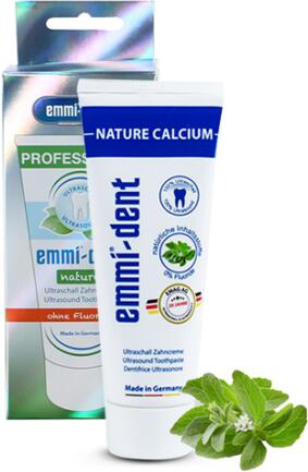 Emmi-dent Nature Calcium - ultrahangos fluorid mentes fogkrém, kálciummal (75ml) Hozzáadott kálciummal az egészséges fogakért és fogínyért. A 100% valódi ultrahangos Emmi-dent fogtisztítás és szájhigiénia részeként az Emmi-dent speciális fogkrémei mikrobuborékok képződésével gondoskodnak az optimális tisztítóhatásról. A valódi Emmi-dent ultrahang és az Emmi-dent fog