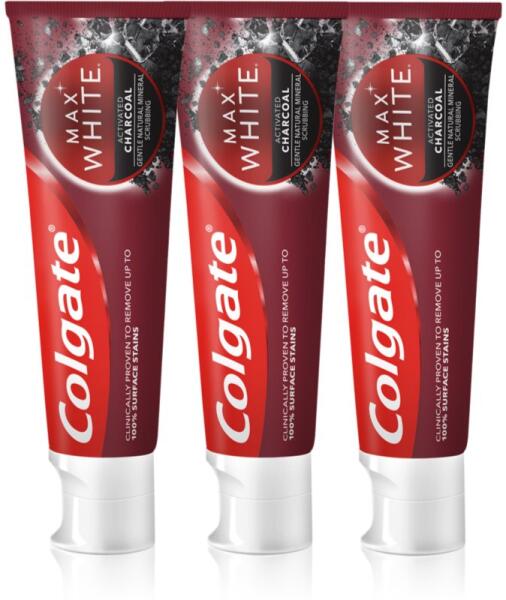 Colgate Max White Charcoal, 3x75 ml, Fogfehérítő fogkrémek unisex, A kiváló minőségű Colgate Max White Charcoal fogrém a fogak kíméletes fehérítésére szolgál. Hatékonyan távolítja el a fogak kellemetlen elszíneződését és rendszeres használatát ragyogó mosollyal köszöni meg önnek. Tulajdonságok: fehéríti a fogakat segít leküzdeni a fogszuvasodást és a fogleped