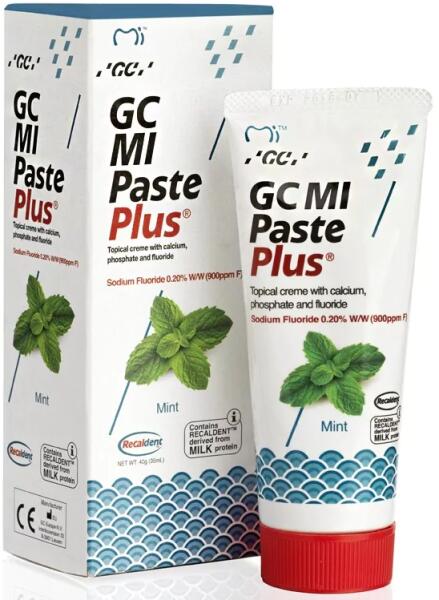 GC MI Paste Plus fogkrém Jellemzők és előnyök: A Tooth Mousse által kínált összes előny, plusz a 900 ppm fluorid egyedülálló szabadalmaztatott formájának jelenléte által kínált előnyök. Semlegesíti a lepedékbaktériumok pH-változásait Megakadályozza a Streptococcus mutans és sobrinus megtapadását és szaporodását Remineralizálja a kezdődő elváltozásokat és mege
