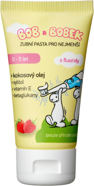 Gyerekfogkrém a tejfogak védelmére. Bob és Bobek fogkrém 0-5 éves korig, 50 ml Gyerekfogkrém a tejfogak védelmére. Az EAPD (European Academy of Paediatric Dentistry) ajánlásai szerint 1000 ppm fluoridot tartalmaz. A kókuszolaj és a xilit ellensúlyozza a lepedékképződést, az E-vitamin segít megvédeni a sejteket az oxidatív stressztől. A béta-glükánok pozitív hatással vann