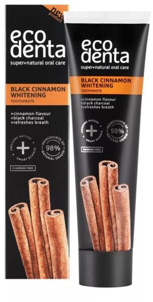 TestápolásEcodenta fehérítő fogkrém szénnel és fahéjjal, 100 ml - Az Ecodenta fehérítő fogkrém szénnel és fahéjjal egy természetes összetevőkből készült fogkrém, amely hatékonyan távolítja el a foglepedéket és a foltokat, miközben friss leheletet biztosít- A fogkrém fluoridmentes, ideális az érzékeny fogínyűek számára is- Fluoridmentes, fahéj ízesítésű fo