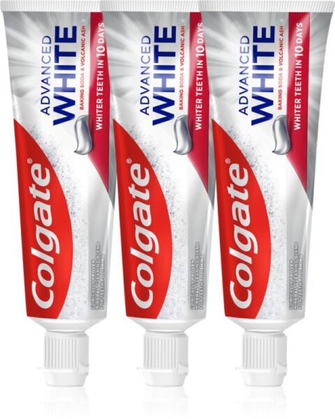 Colgate Advanced White Volcanic Ash and Baking Soda, 3x75 ml, Fogfehérítő fogkrémek unisex, A kiváló minőségű Colgate Advanced White Volcanic Ash and Baking Soda fogkrém teljes mértékben gondoskodik a fogak és a fogíny ápolásáról és kellemesen üde leheletet biztosít. Tulajdonságok: segít leküzdeni a fogszuvasodást és a foglepedéket garantáltan kíméli a fogzománcot el
