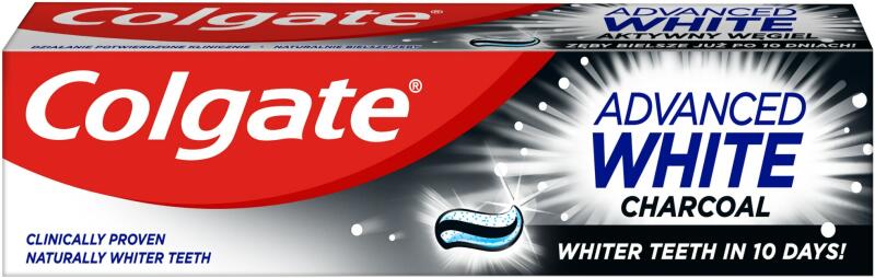 Colgate Advanced White Charcoal Fogkrém, 100 ml Az aktív szénnel gazdagított Colgate Advanced White Charcoal fogkrém kilinailag bizonyítottan távolítja el a felszíni elszíneződéseket, elősegítve, hogy fogaid 14 napon belül újra elnyerjék természetes fehérségüket*. *Klinikailag igazolt.