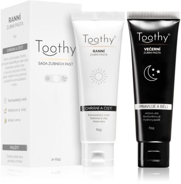 Toothy® All Day Care, , Fogfehérítő fogkrémek unisex, A kiváló minőségű Toothy® All Day Care fogrém a fogak kíméletes fehérítésére szolgál. Hatékonyan távolítja el a fogak kellemetlen elszíneződését és rendszeres használatát ragyogó mosollyal köszöni meg önnek. A szett tartalma: Ranní zubní pasta 65 g Večerní zubní pasta 65 g Tulajdonságok: fehéríti a fogak