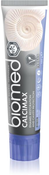 Biomed Calcimax, 100 g, A fogzománc megerősítésére unisex, A kiváló minőségű Biomed Calcimax fogkrém nem tartalmaz fluoridokat és természetes módon erősíti a fogakat. Érzékeny fogak és fogíny ápolására különösen alkalmas. Tulajdonságok: erősíti a fogzománcot csökkenti a fogak érzékenységét frissíti a leheletet megelőzi a fogszuvasodást Összetétel: fluoridot