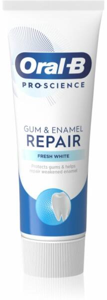 Oral B Gum & Enamel Repair Fresh White, 75 ml, A fogzománc megerősítésére unisex, A minőségi Oral B Gum & Enamel Repair Fresh White fogkrém erősíti a fogzománcot, így védi a fogait a fogszuvasodástól és a fokozott érzékenységtől. Tulajdonságok: erősíti a fogzománcot frissíti a leheletet fogszuvasodás elleni védelmet nyújt helyreállítja a fogzománc károsodott