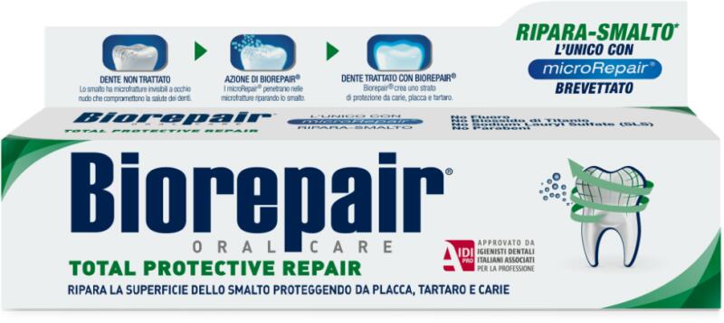 Biorepair® Total Protective Repair fogkrém Fogszuvasodás ellenes hatás. A Biorepair® az egyetlen fogkém szabadalmaztatott microRepair®-el, amely 100%-ban helyreállítja a fogzománcot. A microRepair® részecskék bevonják a fogakat, helyreállítják és megóvják őket a fogszuvasodástól és a plakktól. Nem tartalmaz fluoridot, 6 év alattigyermekek is használhatják felnőtt felü