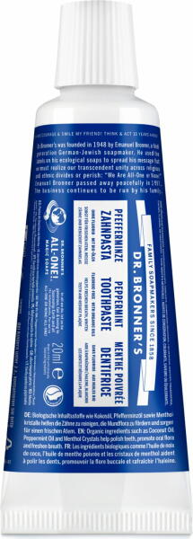 Dr. Bronner’s Peppermint, 105 ml, Fluor nélkül férfiaknak, A kiváló minőségű Dr. Bronner’s Peppermint fogkrém nem tartalmaz fluoridokat és természetes módon erősíti a fogakat. Érzékeny fogak és fogíny ápolására különösen alkalmas. Tulajdonságok: segít leküzdeni a fogszuvasodást és a foglepedéket fehéríti a fogakat frissíti a leheletet Összetétel: fluoridot ne