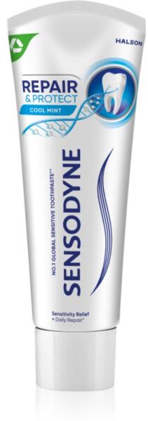 Sensodyne Repair & Protect Cool Mint, 3x75 ml, Fogkrémek unisex, Az érzékeny fogak ápolására szolgáló Sensodyne Repair & Protect Cool Mint fogkrém garantálja, hogy használatával a hideg és forró italokat is kellemetlen érzékes nélkül fogja tudni élvezni. Intsen búcsút a fokozottan érzékeny fogaknak. Tulajdonságok: csökkenti a fogak érzékenységét fogszuvasodás