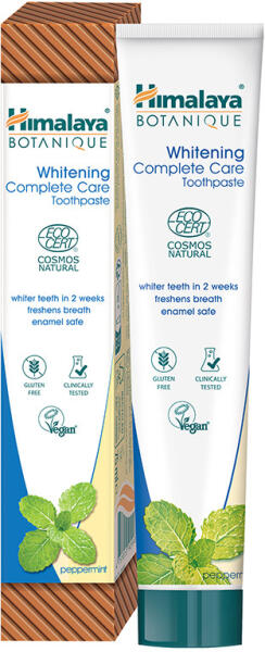 Himalaya botanique natúr fehérítő teljes körű védelmet biztosító borsmentás fogkrém 75 ml Fehérebb fogak akár 2 héten belül. Frissíti a leheletet. Védi a fogzománcot. ECOCERT minősítésű natúr fogkrém természetes eredetű összetevőkkel. Fluoridmentes | Gluténmentes | Klinikailag tesztelt | Vegán A növényi bromelain és papain enzimjeit a nim növény, a xylitol és a