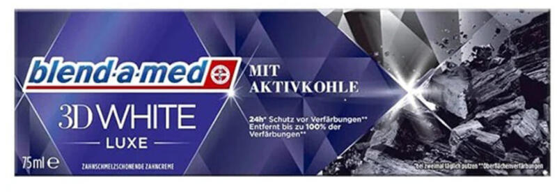 Blend-a-med FOGKRÉM 75ml - 3D White Luxe - Aktív szénnel A felületi elszíneződések akár 100%-át eltávolítja, Aktív védelmet nyújt a felületi elszíneződések ellen 24 órán át, napi kétszeri fogmosás esetén, Tápláló fluoriddal erősíti a fogzománcot, Aktív szénporral és friss, mentolos ízzel a hosszan tartó frissességért A Blend-a-med 3DWhite Luxe Aktívszenes fogk