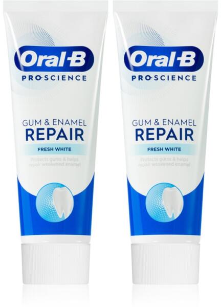 Oral B Gum & Enamel Repair Fresh White, 2x75 ml, A fogzománc megerősítésére unisex, A minőségi Oral B Gum & Enamel Repair Fresh White fogkrém erősíti a fogzománcot, így védi a fogait a fogszuvasodástól és a fokozott érzékenységtől. Tulajdonságok: erősíti a fogzománcot frissíti a leheletet fogszuvasodás elleni védelmet nyújt helyreállítja a fogzománc károsodo