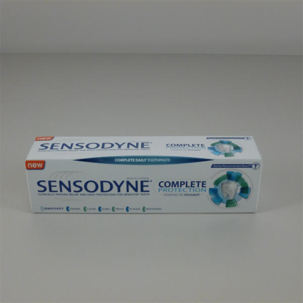 Sensodyne fogkrém complete protection 75 ml SENSODYNE FOGKRÉM COMPLETE PROTECTION 75 ML. Teljes védelem az érzékeny fogakra. létrehoz egy védő ásványi réteget az érzékeny területekre erősíti és újra megkeményíti a zománcot megelőzi a plakk képződést segít fenntartani az egészséges fogínyt felfrissíti a leheletet segít fenntartani a természetes fehérségét tiszta