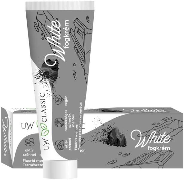 Az UW Classic White fogkrém aktív szenet tartalmaz, mely tisztító tulajdonságáról ismert, emellett rendszeres használatával segít eltávolítani a fogzománcon megtapadt szennyeződéseket és megóvni a fogak fehérségét.
