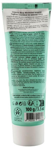 A bambusz szén és a bio mentakivonat nagyszerű kombinációja segít eltávolítani a lepedéket és megőrzi fogai természetes fehérségét, miközben hosszan tartó friss leheletet biztosít.