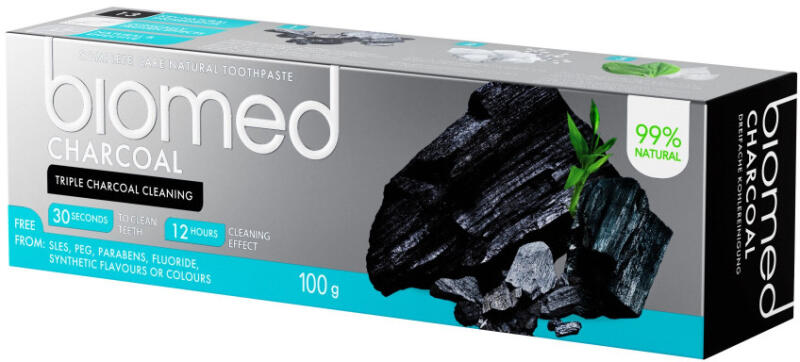 Biomed Fogkrém Charcoal 75 ml A három fajta faszén (bambusz, aktív és fa), valamint az ananász-kivonatból származó bromelain eltávolítja a fogplakkot és finoman fehéresíti fogait 1 teljes árnyalattal (4 hetes használat után). A kalcium-hidroxiapatit erősíti és helyreállítja a fogzománcot. A cink-citrát, az útifű és nyírfalevél kivonatok friss leheletet nyújtanak, vala