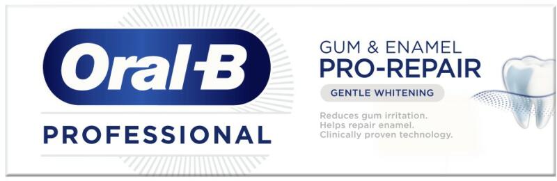 Az Oral-B Professional Gum & Enamel Pro-Repair Gentle Whitening fogínyvédő és zománchelyreállító fogkrém csökkenti a fogíny-irritációt és már 2 hét alatt segít a fogzománc helyreállításában – meggyengült fogzománcon végzett laboratóriumi vizsgálat alapján. Különleges ActivRepair technológiája semlegesíti a káros baktériumokat és csökkenti az irritációt.