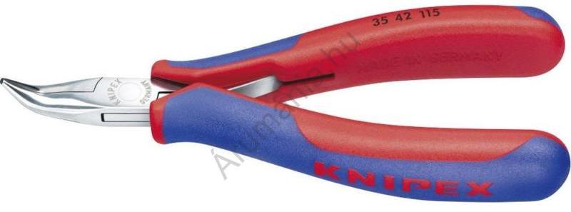 Elektronikai fogó KNIPEX 35 42 115 Speciális szerszámacél, kovácsolva, olajban edzve, tükrösre polírozott fej, a markolat többkomponensű bevonattal Forma: 4:45° sarkított, lapos, kerek pofák Jellemzők: Élek gondosan sorjázva · A politúr, vagy tükörpolitúr (csak a 2-es kivitel) a finom olajfilmmel jó rozsda elleni védelmet biztosít - a leváló krómdarabkák nem okoznak zav