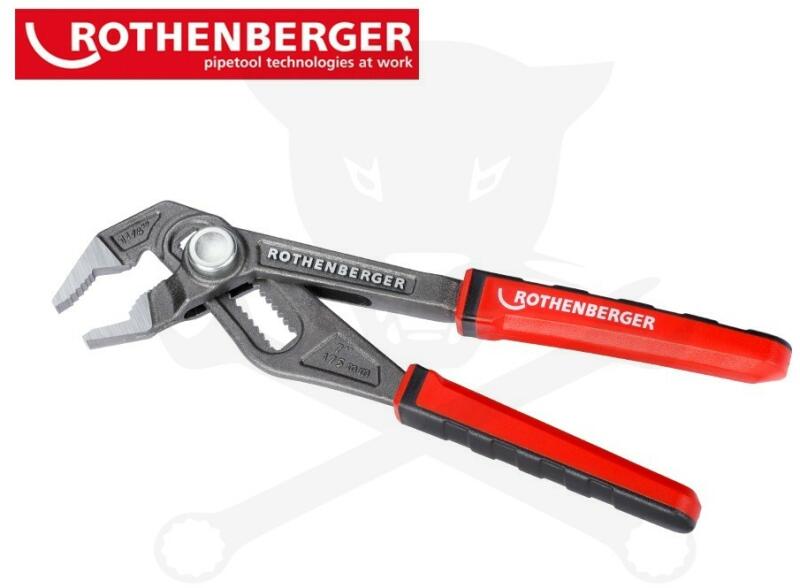 Rothenberger A ROGRIP F 7-es 2K tipusú vízpumpa fogó 1.1/4" átmérőig bezárólag csövek megfogására készített. Csőszereléseknél, autóipari műhelyekben egyszerűen elengedhetetlen. Biztonsági rögzítő rendszer megakadályozza a véletlen nyitást és akár 50%-kal gyorsabb beállítást tesz lehetővé. A Rothenberger Rogrip F 7" vízpumpafogó gyorsan állítható 1.1/4"-ig. Kü