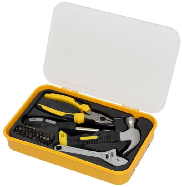 mágneses csavarhúzó (155mm), 20db bit-fej kombinált fogó, 165mm szeghúzó kalapács, 160mm, 8oz csavarkulcs, 150mm / 20mm Gondolkodott már azon, hogy milyen jól jönne egy átfogó, praktikus szerszámkészlet a kisebb javításokhoz és szerelésekhez otthonában? A Home DE418679 szerszámkészlet egy kiváló választás mindazok számára, akik megbízható, jól áttekinthető és kön