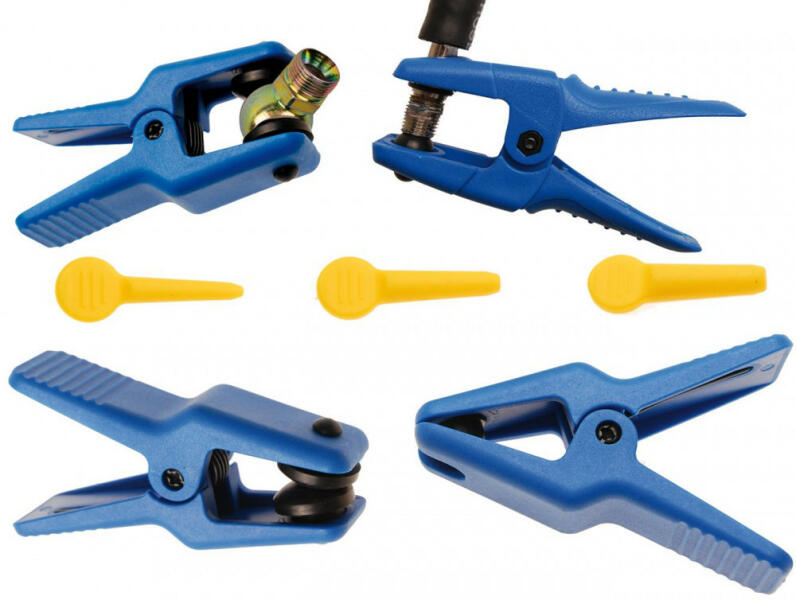 Angol nyelvű leírás (a magyar fordítást lásd lejjebb):for locking the brake lines and hoses with Banjo fitting during repair jobsprevents spillage and leakage of operation liquidsfor e. g. brake hoses, air conditioning hoses, power steering hosescontains 2 locking pliers and 3 locking clips, suitable for three different hose diameters (internal diameter 5 mm - 6.3 mm - 8 mm)Magyar fordítás