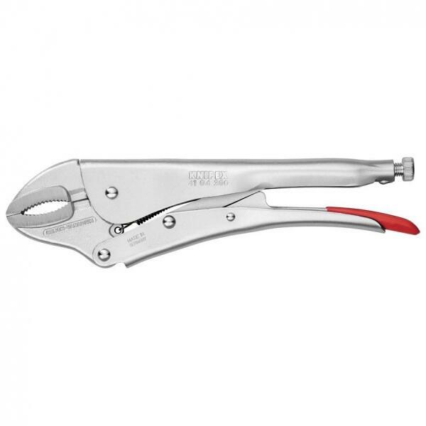 822163 Univerzális Grip fogó 300 mm, befogás Ø 65 mm, négyszög 30 mm, hatszög 34 mm, Knipex 41 04 300 Szorítófogó Leírás Biztosan tartja a kerek-, profilos- és sík anyagokat is Nagy terhehetőségű Állítócsavarral és kioldókarral Egy kézzel is működtethető Nagy szorítónyomás az emelős áttétellel. Műszaki adatok : Méret, hossz: 300 mmFesztáv (csipeszpofák): Ø 65 m