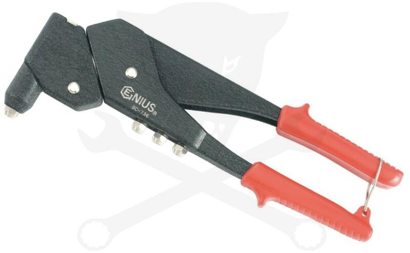 Egykaros húzó, 360° forgatható fejjel. Bármilyen szögben szegecsel. Rozsdamentes acél szegecsekhez való. Professzionális kialakítása és minősége alkalmassá teszi építőipari és járműipari felhasználásra is. 1db popszegecs-húzó 4db cserélhető fej; méret: 2.4, 3.2, 4, 4.8mm 40db popszegecs; méret: 5db 2.4mm, 15db 3.2mm, 15db 4mm, 5db 4.8mm A Genius Tools fogók és szorí