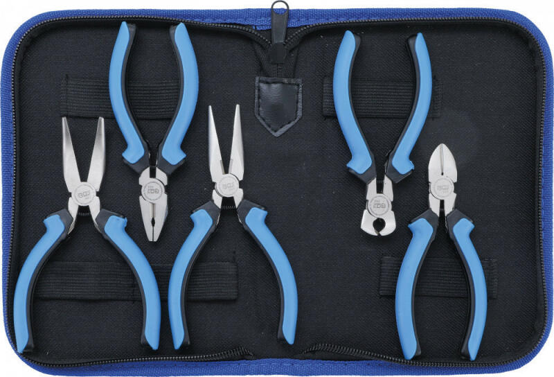 Angol nyelvű leírás (a magyar fordítást lásd lejjebb):double spring loadedwith insulated plastic bowsin a black zipper walletincludes the following tools:combination pliers 120 mmdiagonal side cutters 115 mmbent nose pliers, straight, 130 mmbent nose pliers, bent, 125 mmend cutting pliers 105 mmMagyar fordítás (fordító automata segítségével):kettős rugó betöltveszigetelt műanyag