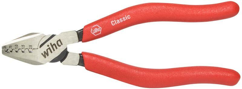 WIHA Classic saruzó fogó érvéghüvelyhez - 145/0,25-2,5 mm A Wiha termékei kiváló minőségű prémium szerszámok, melyeket csúcsminőség, a tökéletes megbízhatóság és a felhasználókhoz igazodó termékinnováció jellemez. Jellemzők Fix profilú hornyok a megfelelő kábel keresztmetszetekhez Trap z vagy félköríves profilok az érvéghüvely és a kábel közötti stabil kap