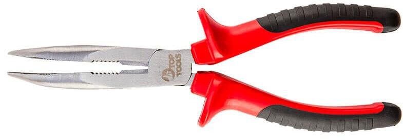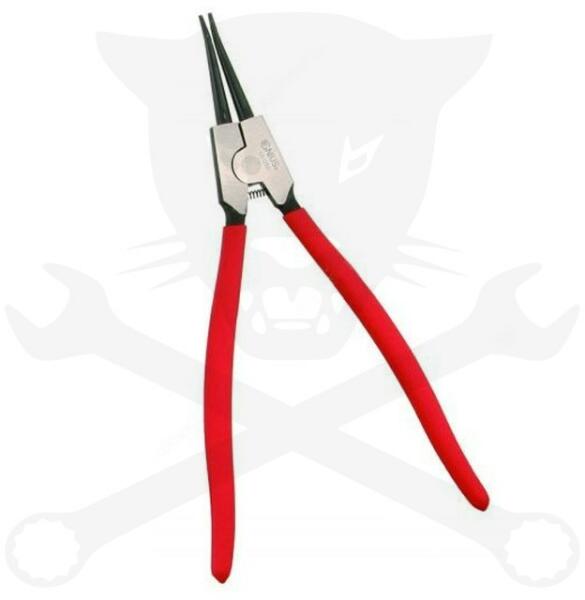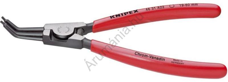 Fogó a külső gyűrűk rögzítéséhez, 45°-os szögben lekerekített Kivitel: DIN 5256 C és DIN 5256 D szerint, de 45°-os szögben lekerekített. Króm-vanádium acélból kovácsolt, olajban edzett és edzett, polírozott fej. Csúszáscsillapítás a hegyek speciális geometriájának köszönhetően. Fogantyúk műanyag kezeléssel. Kivitel: Külső rögzítőgyűrűk felszereléséhez,