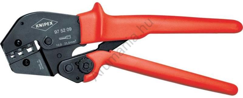 Krimpelőfogó kétkezes kezelésre is Tartós használatban kétkezes kezelésre alkalmas Optimális, forrasztásmentes, DIN szerinti elektromos csatlakozást garantál. Jellemzők: A krimpelési nyomás gyárilag pontosan beállítva (kalibrált) · Kétkezes kezelés a nagy keresztmetszetű vezetékek krimpelésekor · Jó kezelhetőség a kiegyensúlyozott súlyponti helyzet, a lesarkított fe