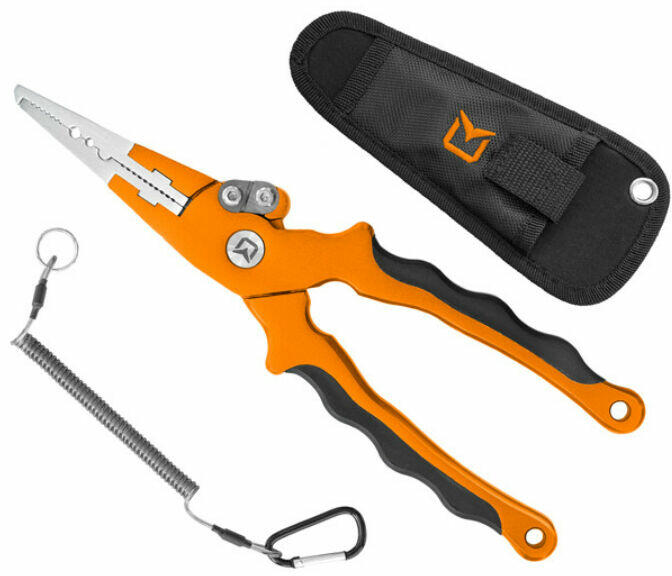 Alaposan kidolgozott multifunkciós fogó, mellyel gond nélkül megoldja a gyűrűk nyitását, krimpelő csövek összenyomását vagy különböző damilok és fonott zsinórok nyírását. Ráadásul elegendően hosszúk a pofák, hogy ki tudja venni a horgot a ragadozó halak szájából. Rozsdamentes acélból készült, a fogó részen csúszásálló gumi bevonat van. A SpinSET fogó övre