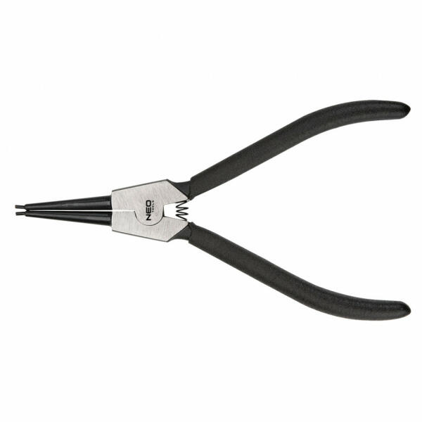 Seeger fogó biztosítógyűrűkhöz, 220 mm, külső, hajlított, NEO 01-095Seeger-gyűrű fogó, NEO külső, hajlított, méret: 220 mm. 85-140 mm-es gyűrűkhöz, hegy átmérője 1.5mm és 4mm között. A kiváló minőségű króm-vanádium acél biztosítja a fogó hosszú idejű tartósságát. A csúszásmentes fogantyúk jól fekszenek a tenyérben, és segítik az erős megfogást. A sz