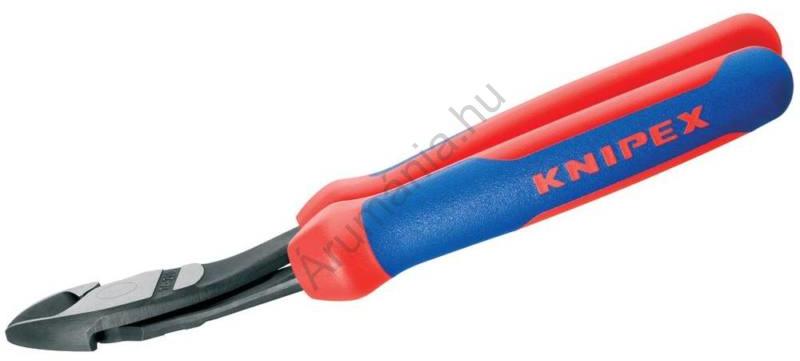 Erõkímélõ oldalcsípõfogó 12°-ban hajlított közepes/kemény/zongora huzal max. : ? 4 2/3/2 5 mm Knipex 74 22 200 Erõ-oldalcsípõfogó nagyteljesítményű króm-vanádium acél kovácsolt olajban edzett a fogó feketére színezett a fej polírozott a nyelek többkomponensű réteggel bevonva 2. alak: a 12°-os szögben megtört fej szabad helyet biztosít a megfogáshoz Jellemzõk: opt