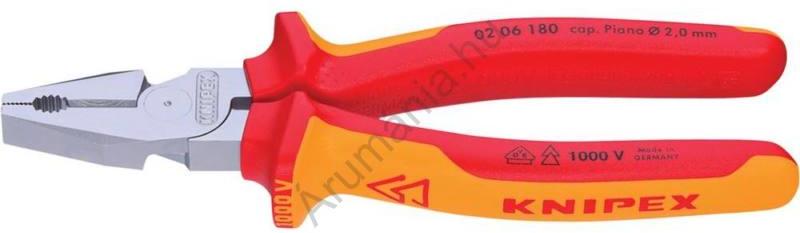 VDE teljesítménykombinációs fogó KNIPEX, krómozott fej Kivitel: DIN ISO 5746. Speciális szerszámacélból, speciális kezelésben, olajban edzett és edzett. Krómozott fej, celusz és markolózónák lapos és kerek anyagokhoz. A hegyek ezenkívül induktívan edzettek (63 HRC) és nagy erőkifejtéssel rendelkeznek, 35%-os erőmegtakarítással a jobb áttételi aránynak köszönhetően