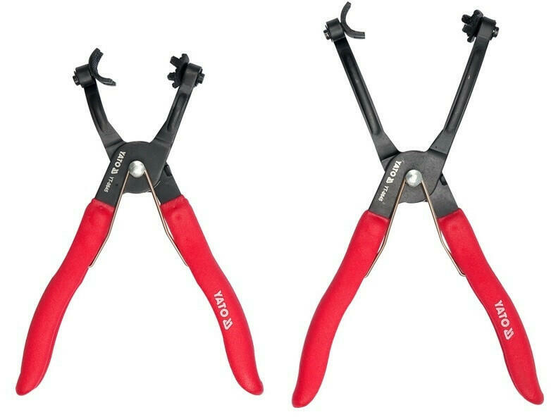 A YATO 2 részes fogókészlet bilincsekhez és vezetékekhez 2 fajta hosszban (méretben). Ideális a legtöbb autógyártó által használt bilincsek összenyomásához. Hajlított csőre megkönnyíti a bilincsekhez való hozzáférést. Ergonomikus, csúszásmentes markolata nagyobb erőkifejtést tesz lehetővé. Kiszerelés: 2 részes készlet Alkalmazás: bilincs összenyomására (pl. v