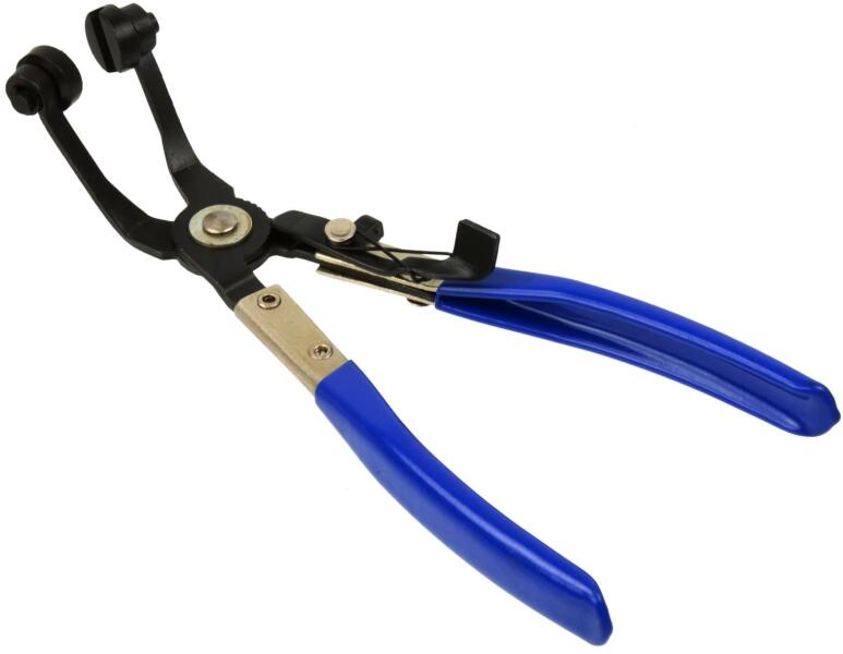 A termék leírása: A fogó üzemanyag-, olaj- és vízvezetékeken használt bilincsek leszedésére szolgál. A speciálisan hajlított fejek lehetővé teszik, hogy nehezen elérhető helyeken megfogja a bilincset. Van egy 8 lépcsős mechanizmus, amely lezárja automatikusan a fogót. A termék jellemzői: beállítási tartomány 18 - 54 mm 8 utas reteszelő mechanizmus csúszásgátló műa