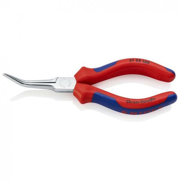 Markolófogó (tűfogó) króm-vanádium acél, kovácsolt, olajban edzett, krómozott fogó, a nyelek többkomponensű bevonattal 2. alak: 45°-ban lesarkított pofák Jellemzők: Precíziós fogók a legfinomabb szerelési, hajlítási és jusztírozási munkákhoz · különlegesen hosszú pofákkal: a pofa hosszúsága 55,0 mm · simára köszörült fogófelületek · az élek gondosan sorjam