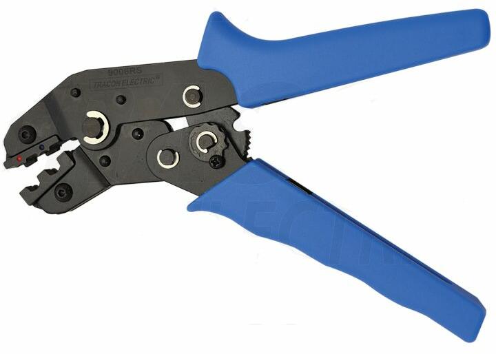 Tracon présszerszám szigetelt kábelsarukhoz 0,5-2,5 mm2 Tracon 9006RS présszerszám szigetelt saru kábelre préselésére, nyomására, 0,5-2,5 mm2 keresztmetszetű szigetelt saruhoz. Racsnis mechanizmus, nagy szorítóerő, két oldalon szorító préselőpofák. Hossz: 230 mm. A présszerszám súlya: 600 g