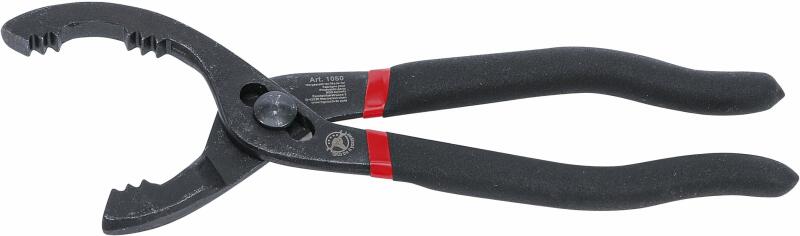 Olajszűrő leszedő fogó, 3 állású kivitel, személy- és kistehergépjárművekhez. Műszaki adatok: Kivitel: 3 állású fogó Méret: 50 - 90 mm Hossz: 250 mm Súly: 416 gramm Markolat: csúszásmentes gumis bevonat