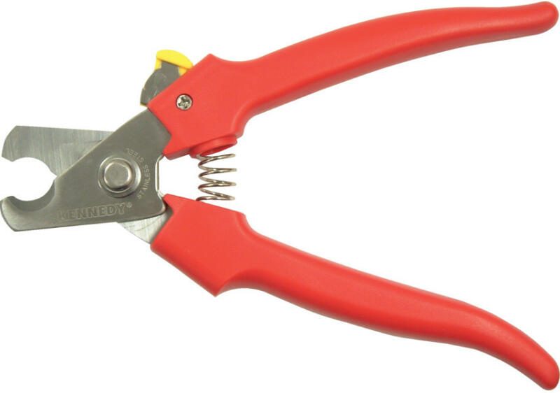 Vörösréz kábelek, műanyag csövek, faékek, huzalok és hasonló anyagok vágásához egész 10 mm átmérőig. Edzett és köszörült rozsdamentes vágóélek. Keménység: 50 - 54 HRC. Könnyű, polipropilén markolat, nyitórugóval és ujjal működtetett retesszel. Teljes hossz: 165 mm (6 1/2") Vágási teljesítmény: 10 mm (3/8") Súly: 130 g