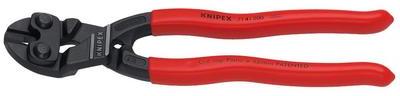 822261 Kompakt csapszeg-vágó 200 mm, 335 g, Knipex CoBolt 71 41 200 Csapszegvágó, kompakt, KNIPEX CoBolt Leírás a fogó feketített, a nyelek műanyaggal bevonva, bemélyesztéssel a vágás megkönnyítésére a vastagabb huzaloknál 4. alak: az élben lévő bemélyesztés megkönnyíti vastagabb huzalok elvágását pl. függesztett födémszerkezeteknél, 20°-ban hajlított fej egyoldal
