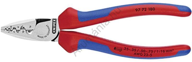 Könnyű és karcsú kivitel VDE változatban is Könnyű krimpelés az optimalizált áttételnek köszönhetően DIN 46228 1 + 4. rész szerinti érvéghüvelyek préseléséhez a 0,25 - 16 mm2 tartományban Sajtolás jelölt fél-gömbölyű profilokban, hüvely és vezető biztonságos összekötéséhez 9 darab különösen mély profil kúpos oldalfelületekkel Kényelmes nyélbevonattal: h
