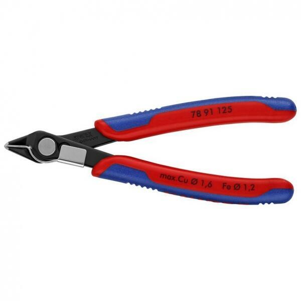 Electronic Super-Knips® Jellemzők: nyitórugóval és nyitáskorlátozással · precíziós köszörülésű élek nagyon kis fazettával még a kemény huzalokhoz is · az élek kiegészítésül induktívan edzve, élkeménység kb. 64 HRC · huzalszorítóval - így nem szóródhatnak szét a levágott huzalvégek · precíziós fogó a legfinomabb szerelési munkákhoz, pl. az elektronika é