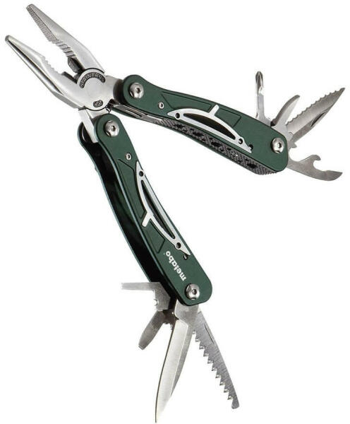 FogóNagy vágókésKis vágókésKis csavar behajtó: S2Nagy csavar behajtó: S3FűrészkésKonzerv nyitóÜvegnyitóPhillips csavar behajtó: PH1Precíziós eloxált alumínium nyélRozsadmentes acél szerszámÖvcsipesz