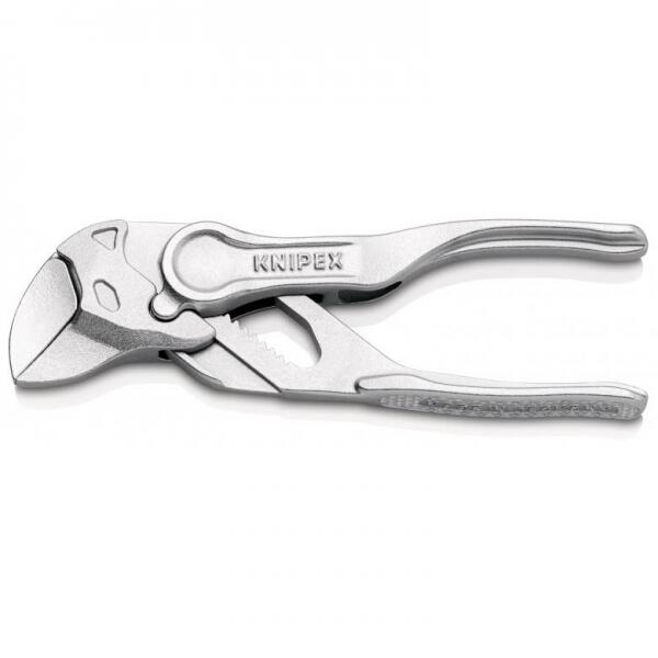 Vízpumpafogó készlet Cobra®, 5-részes Kivitel: DIN ISO 8976. Króm-vanádium elektroacélból, olajban edzett és megeresztett, polírozott fej, fogófelületek speciálisan edzett fogakkal (61 HRC). Gyors és pontosan illeszkedő beállítás gombnyomással, egy kézzel állítható. Az áttűzött siklócsukló a kettős megvezetés következtében nagy stabilitást tesz lehetővé. A becs