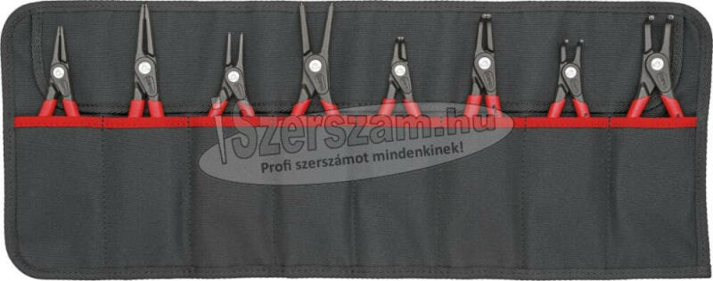 Seeger-gyűrű fogó készlet Feltekerhető táska strapabíró poliészter szövetből. Praktikus, állítható pillanatzárral. Nyolc közkedvelt precíziós biztosítógyűrű-fogó a maximális követelményekhez. Méretek, nyitva (Ho x Ma): 610 x 240 mm. önkiszolgáló kártyán/buborékfóliában. Szállítási terjedelem: 1 x 48 11 J1 KNIPEX Precíziós Seeger-gyűrű fogó Furatokban lév