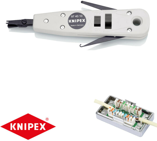 Berakószerszám Szerszám sávokon, aljzatokon és mezőkön történő felhelyezésre. Benyomás és levágás egy műveletben. UTP- és STP-kábelekhez átmérő 0,4 - 0,8 mm-es vezetővel. Beépített húzóhoroggal és kioldópengével. - Ház: Műanyag - Alkalmazás: UTP- és STP kábel, LSA-Plus és azonos kivitelű - Kapacitás (átmérő): 0,4 - 0,8mm